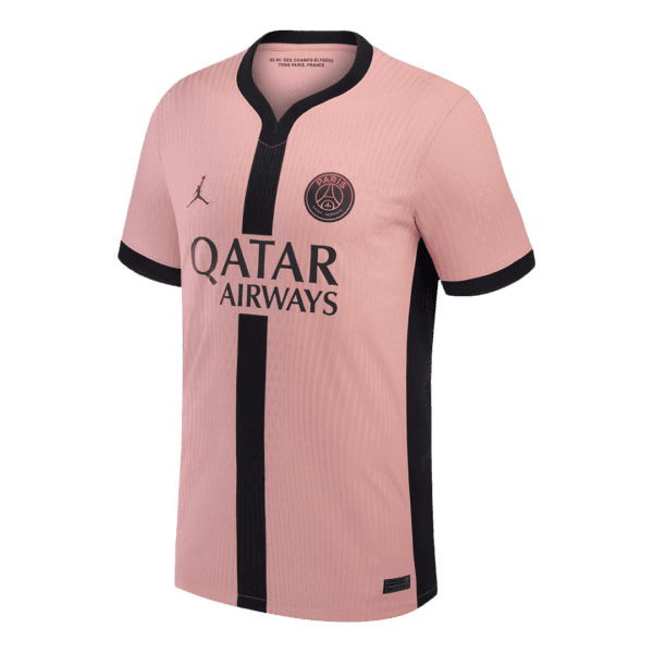 Le maillot du PSG se caractérise par un rose rouille et des détails noirs, la combinaison du noir et du rose rendant ce maillot du PSG encore plus unique. Ce maillot du PSG 2024/25 fait partie de la campagne ¡°Together We Rise¡± de Nike. qui met l'accent sur l'essor du football féminin. Sur les camisetas futbol du PSG, il y a une Bande verticale noire au centre, ressemblant à une lettre 'Y' ;. Le logo et la bande centrale symbolisent l'unité entre les équipes de football masculine et féminine, un maillot du PSG qui a du sens. La couleur noire est répartie sur le col et la bande centrale emblématique, contrastant avec les camisetas futbol roses du PSG. et qui font que ce maillot du PSG'se démarque.